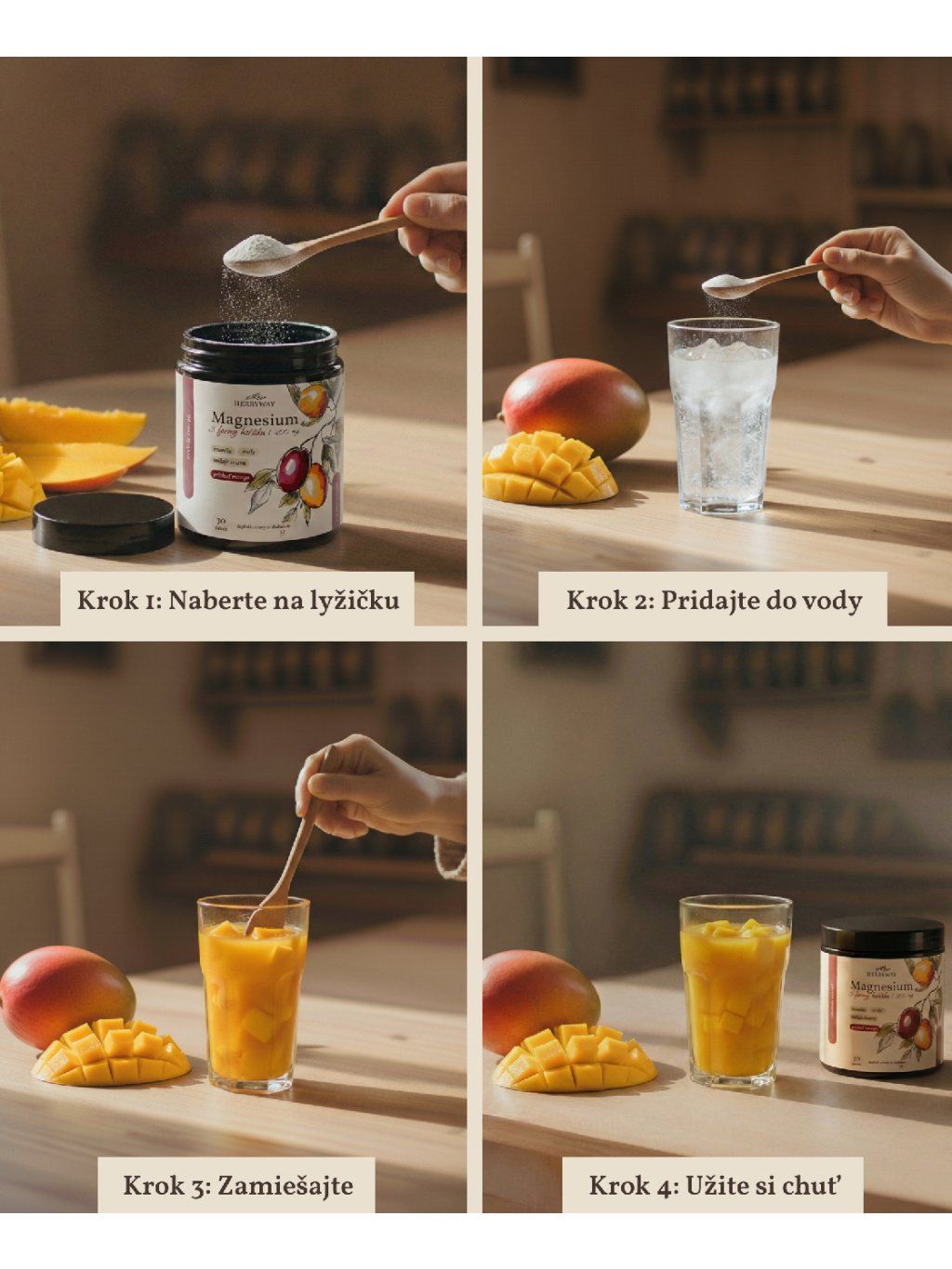 Sypká zmes do vody - ananás, pomaranč, citrón alebo mango Najobľúbenejší produkt, obsahuje 3 vysoko vstrebateľné formy horčíka. Mieša sa s vodou a vypije ako nápoj. Zlepšuje spánok, znižuje kŕče, zvyšuje energiu cez deň. Lepšie je piť ho dopoludnia.